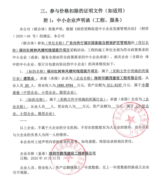 1.供应商名称:深圳市鹏茂建设工程有限公司