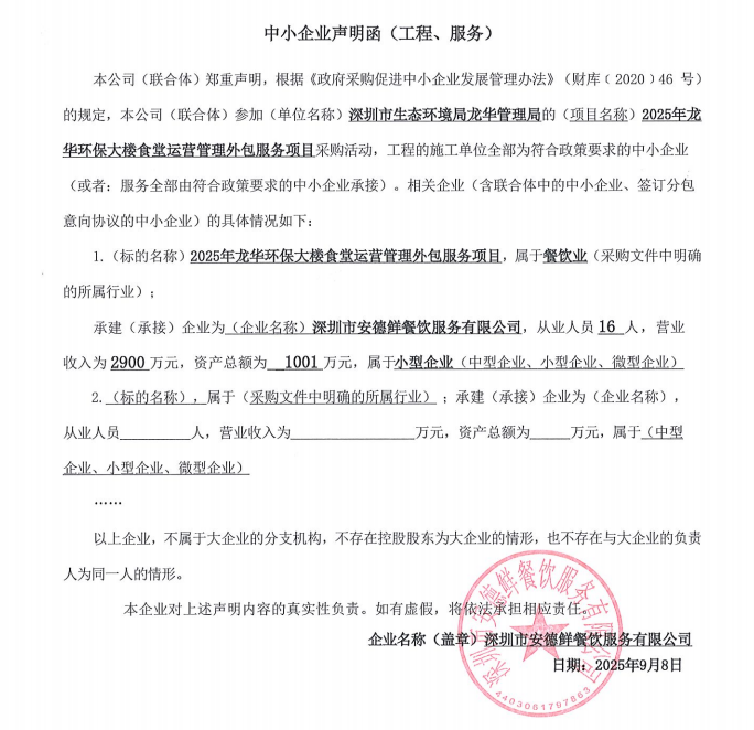3. 服务范围:2025年龙华环保大楼食堂运营管理外包服务,详见招标文件第二章用户需求书。