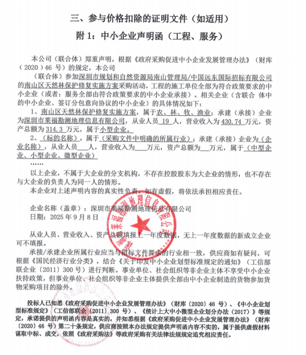 1.供应商名称:深圳市莱福勘测地理信息有限公司