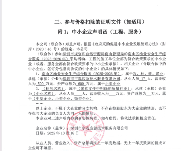 二、项目名称:南山区渔业安全生产综合服务(2025-2026年)