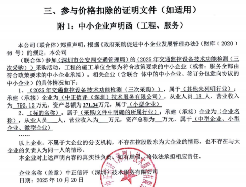 1.供应商名称:中正信评(深圳)技术服务有限公司