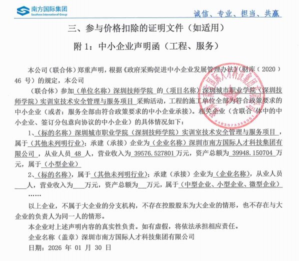 1.供应商名称:深圳市南方国际人才科技集团有限公司