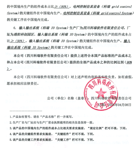| 5 | 电网控制仿真设备 | 1套 | 科瑞 grid control System | ¥170,000.00 |