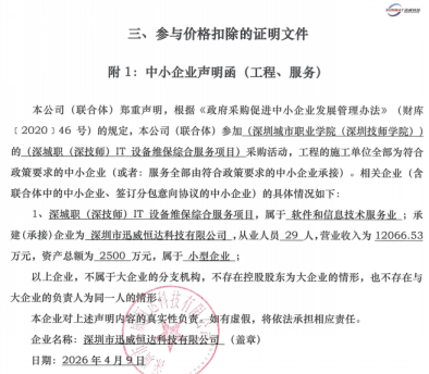 1.项目名称:深城职(深技师)IT设备维保综合服务项目