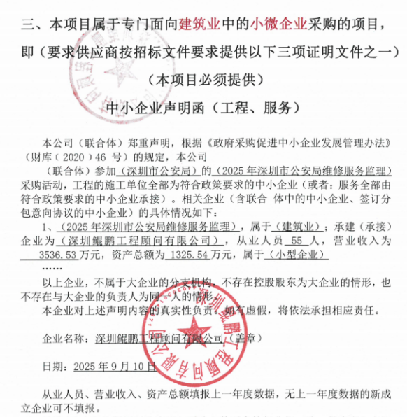 二、项目名称:2025年深圳市公安局维修服务监理(二次采购)