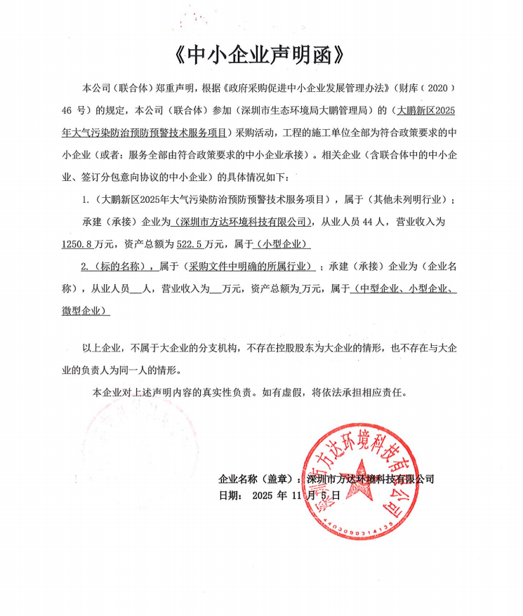 1.名 称:大鹏新区2025年大气污染防治预防预警技术服务项目