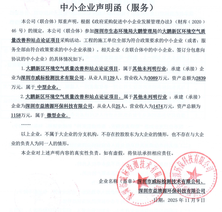 1)深圳市威标检测技术有限公司(联合体牵头单位)、深圳市益清源环保科技有限公司(联合体成员单位)