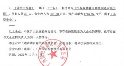 | 3 | 广州国迈检测技术有限公司 | 1)营业执照(或事业单位法人证书)等证明资料复印件;2)法定代表人证明书;3)法定代表人授权书;4)政府采购投标及履约承诺函;5)招标代理服务费承诺书;6)投标报价;7)《供应商基本情况表》、社保缴纳证明材料、股权关系证明材料;8)落实政府采购政策需满足的资格要求:本项目属于专门面向工业中小企业采购的项目。 结论:资格核查通过。 | ¥465,300.00 |