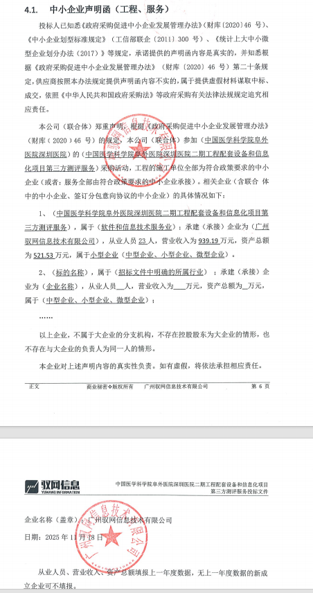 服务要求:开展中国医学科学院阜外医院深圳医院二期工程配套设备和信息化项目第三方测评服务,详见招标文件第三章采购项目需求。