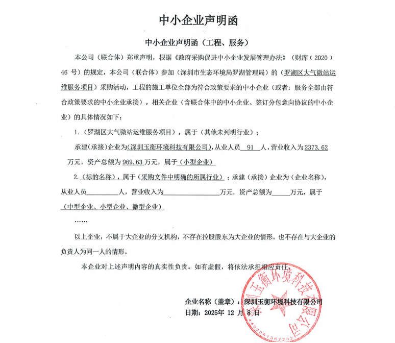 1.供应商名称:深圳玉衡环境科技有限公司