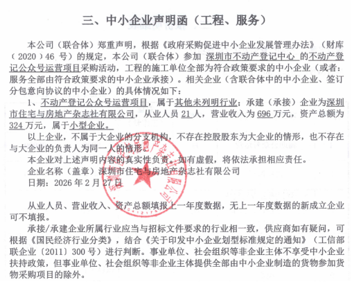 | A | 深圳市住宅与房地产杂志社有限公司 | 1)营业执照(或事业单位法人证书)等证明资料复印件;2)法定代表人证明书;3)法定代表人授权书;4)政府采购投标及履约承诺函;5)投标与合规承诺函;6)招标代理服务费承诺书;7)投标报价;8)《供应商基本情况表》、社保缴纳证明材料、股权关系证明材料。 结论:资格核查通过。 | ¥438,840.00 |