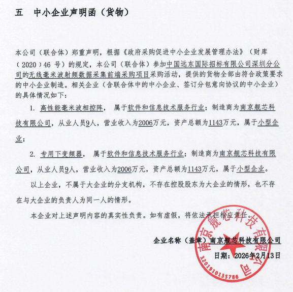 十、中标单位《中小企业声明函》