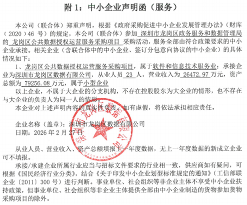 参照国家和深圳市有关招标采购的相关法律法规及政策,中国远东国际招标有限公司(以下简称为采购代理机构)受深圳市龙岗区政务服务和数据管理局(以下简称为采购人)委托实施采购,本项目2026年2月15日发布采购公告,定于2026年3月2日在深圳市龙岗区龙城大道126号维百盛大厦9楼911进行开标和评审,2026年3月2日定标。现中标(成交)结果已经采购单位确认,特此公告如下: