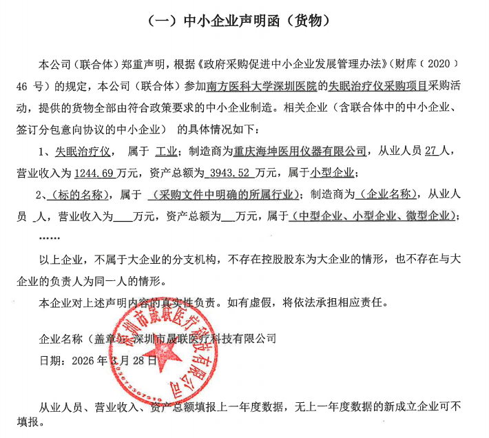 1.供应商名称:深圳市晟联医疗科技有限公司