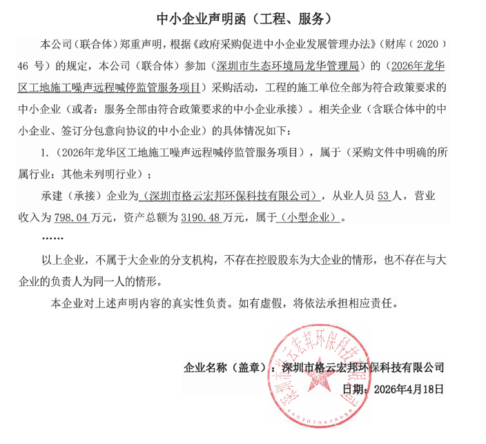 1. 供应商名称:深圳市格云宏邦环保科技有限公司