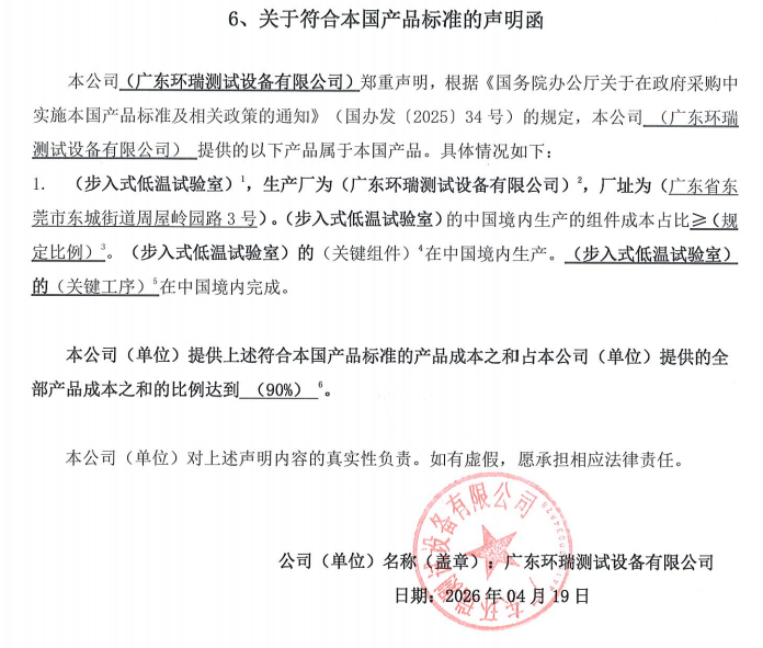 1.供应商名称:广东环瑞测试设备有限公司