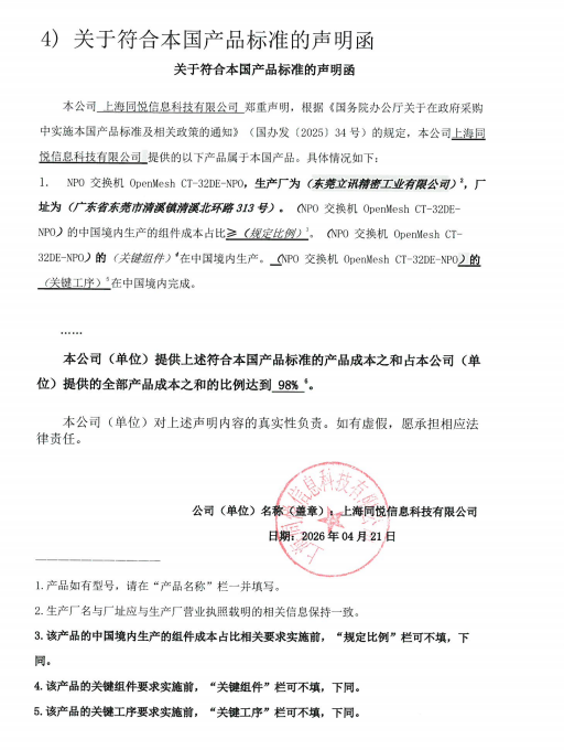 十一、中标单位《关于符合本国产品标准的声明函》